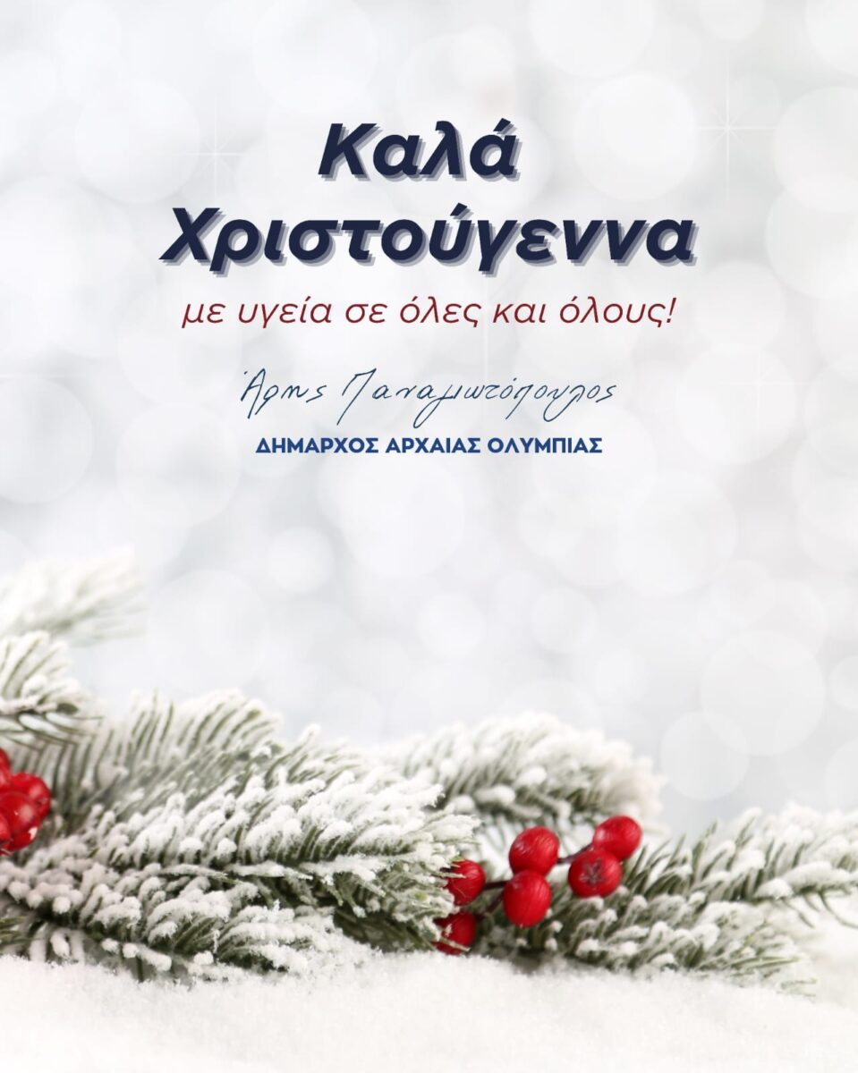 Από καρδιάς, λοιπόν, εύχομαι σε κάθε δημότη και κάτοικο, σε κάθε οικογένεια υγεία, ευτυχία, εσωτερική ισορροπία, δημιουργικότητα και προσωπική ολοκλήρωση. Εύχομαι η Νέα Χρονιά να φέρει ζεστασιά στα σπίτια σας, φως στις προσπάθειές σας και χαρά στις ζωές σας. Να είναι μια χρονιά, κατά την οποία ο καθένας θα κάνει ένα βήμα πιο κοντά σε όσα ονειρεύεται.