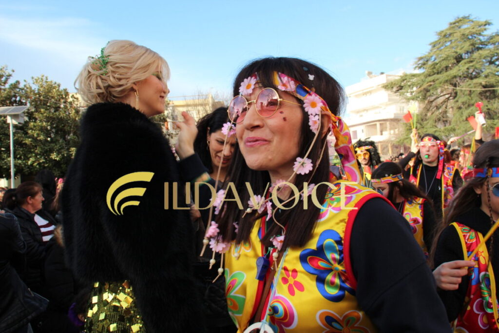 Αυτοί που έκλεψαν την παράσταση ήταν οι αγαπημένοι σε όλους χίπηδες από το 6ο Δημοτικό Σχολείο Αμαλιάδας. Χρώματα, λουλούδια, κιθάρες — μια ολόκληρη εποχή ζωντάνεψε μπροστά μας, αποδεικνύοντας ότι η γοητεία της παραμένει διαχρονική.