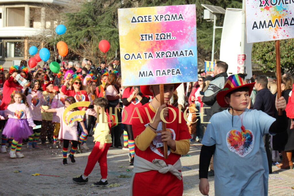 Το 5ο Δημοτικό Σχολείο Αμαλιάδας ακολούθησε αργά με μια χελώνα μπροστάρη, για να ξεσπάσει στη συνέχεια μια πραγματική έκρηξη χρωμάτων και κεφιού.