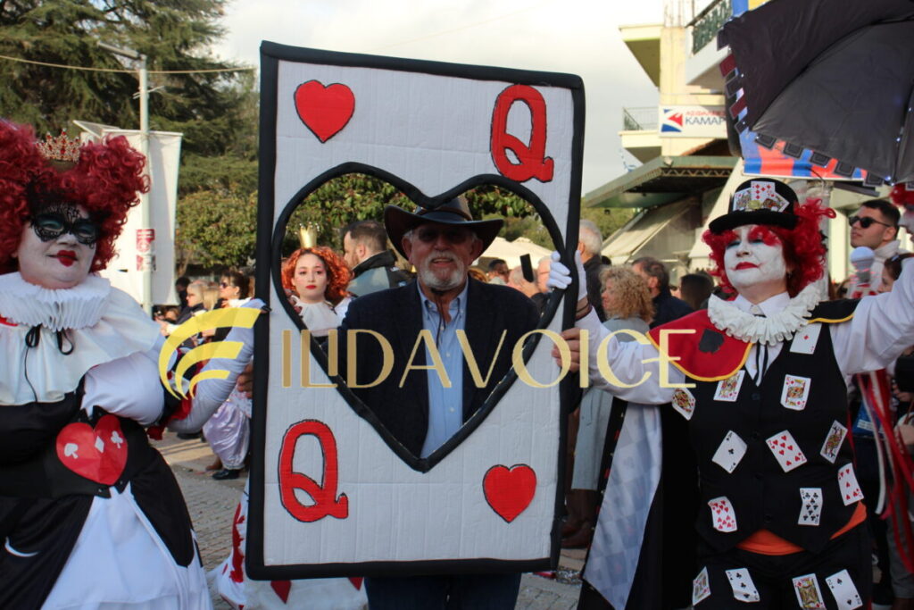 Και στο φινάλε, το έπος της χρονιάς: ο Σύλλογος Πέλοπας! Ένα θέαμα που παρέπεμπε περισσότερο σε σκηνή μιούζικαλ παρά σε απλή καρναβαλική συμμετοχή. Στολές και μακιγιάζ επιπέδου θεατρικής σκηνής, με το κοινό — και τον Δήμαρχο πρώτο — να ποζάρουν στα πορτρέτα-τραπουλόχαρτα. Υπεύθυνη για την οργάνωση η Κυριακή Παναγιωτοπούλου.