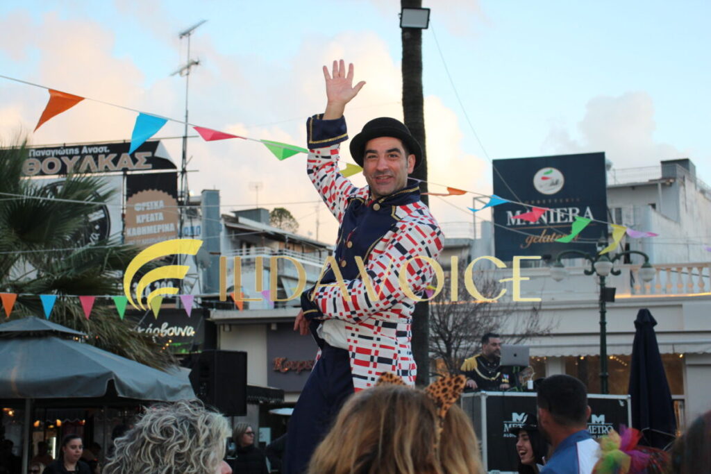 Από νωρίς οι μικροί καρναβαλιστές είχαν κατακλύσει την πλατεία Ανεμομύλου και περίμεναν με ανυπομονησία τη μεγάλη παρέλαση. Στο κέντρο της πόλης, ο dj Τάσος Γαβριλιάδης προετοίμαζε το κλίμα με δυνατές μουσικές επιτυχίες που έδιναν ρυθμό και διάθεση για χορό.