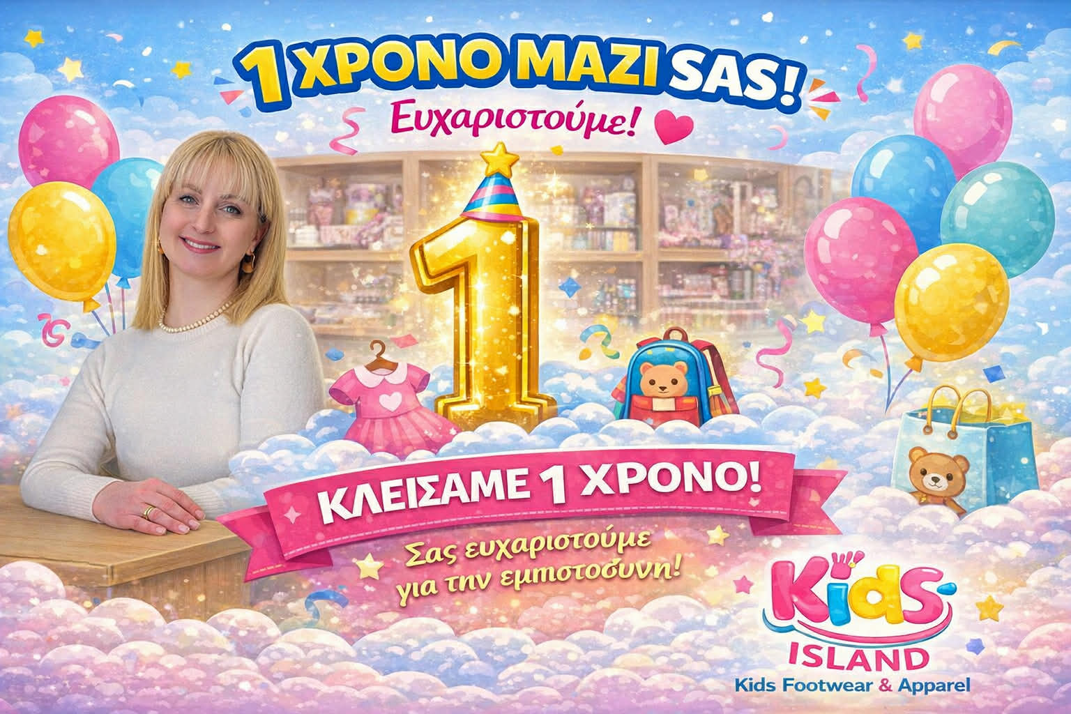 Έναν χρόνο λειτουργίας συμπλήρωσε η επιχείρηση Kids Island, καταφέρνοντας μέσα σε σύντομο χρονικό διάστημα να καθιερωθεί ως ένας από τους αγαπημένους προορισμούς για παιδικά ρούχα και υποδήματα. Με ποιότητα, προσεγμένη αισθητική και μεγάλη ποικιλία επιλογών, το κατάστημα έχει ήδη κερδίσει την εμπιστοσύνη μικρών και μεγάλων.