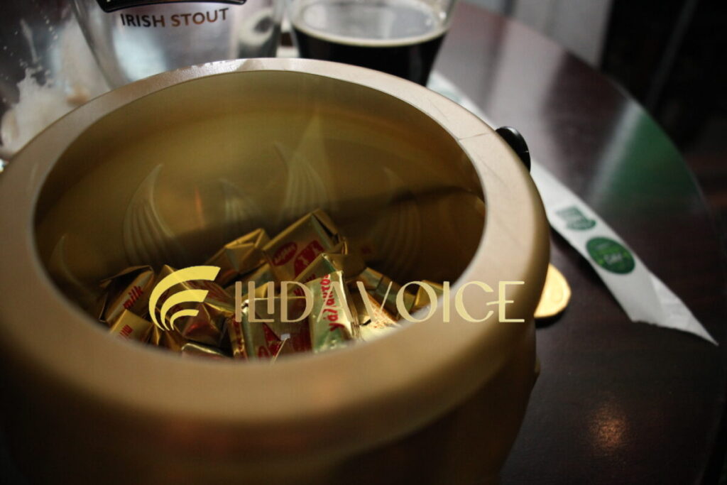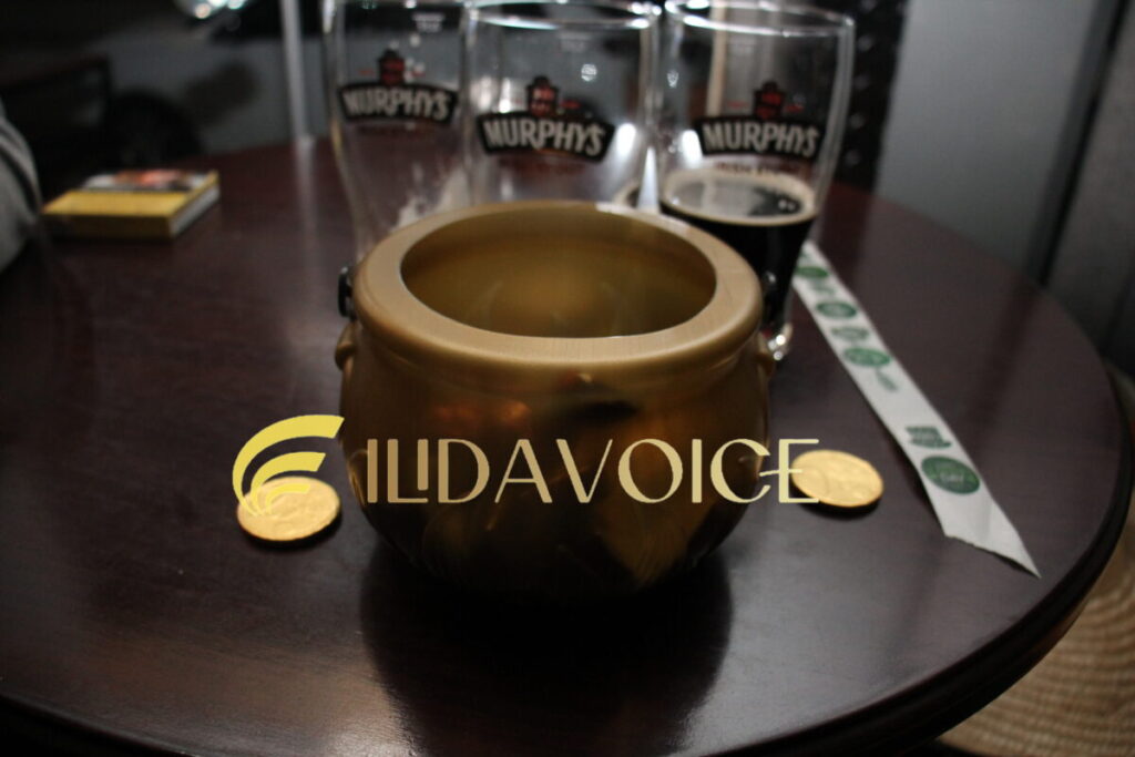 Φυσικά, δεν έλειψαν και τα συμβολικά κεράσματα από το μικρό καζάνι που βρίσκεται στο τέλος του ουράνιου τόξου, το οποίο– σύμφωνα με τον θρύλο – άφησαν τα μικρά ξωτικά για τους θαμώνες, δίνοντας μια παιχνιδιάρικη νότα στη βραδιά.