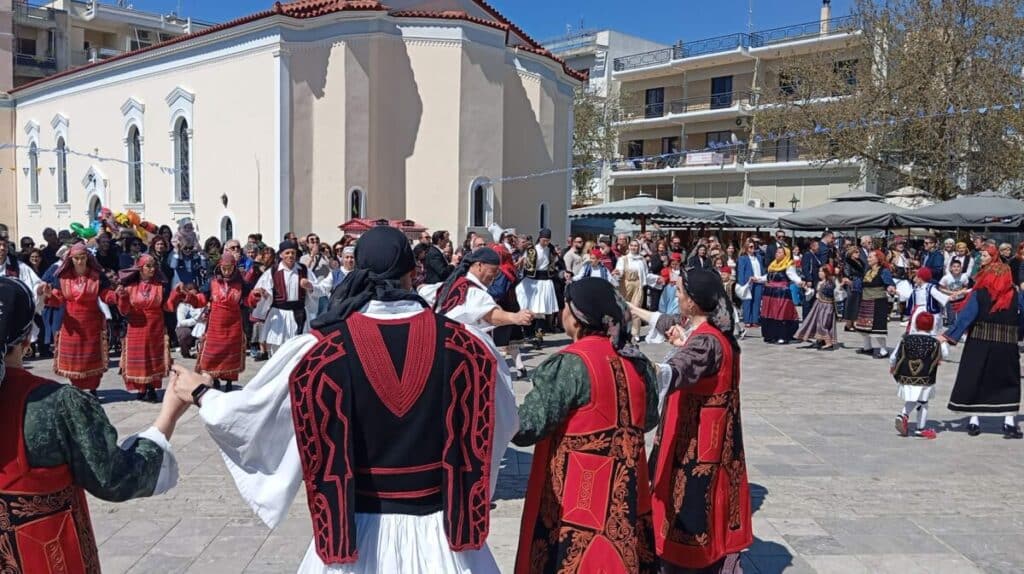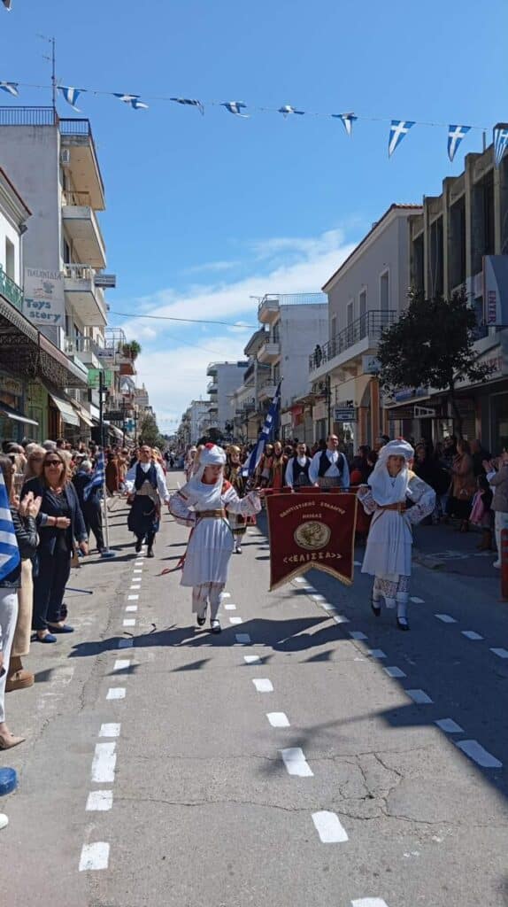 Μετά την ολοκλήρωση της παρέλασης, η εορταστική ατμόσφαιρα συνεχίστηκε στην πλατεία Αγίου Αθανασίου, όπου πραγματοποιήθηκαν παραδοσιακοί χοροί από τα χορευτικά τμήματα του Δήμου Ήλιδας και των τοπικών συλλόγων, αναδεικνύοντας τον πλούτο της πολιτιστικής μας κληρονομιάς.